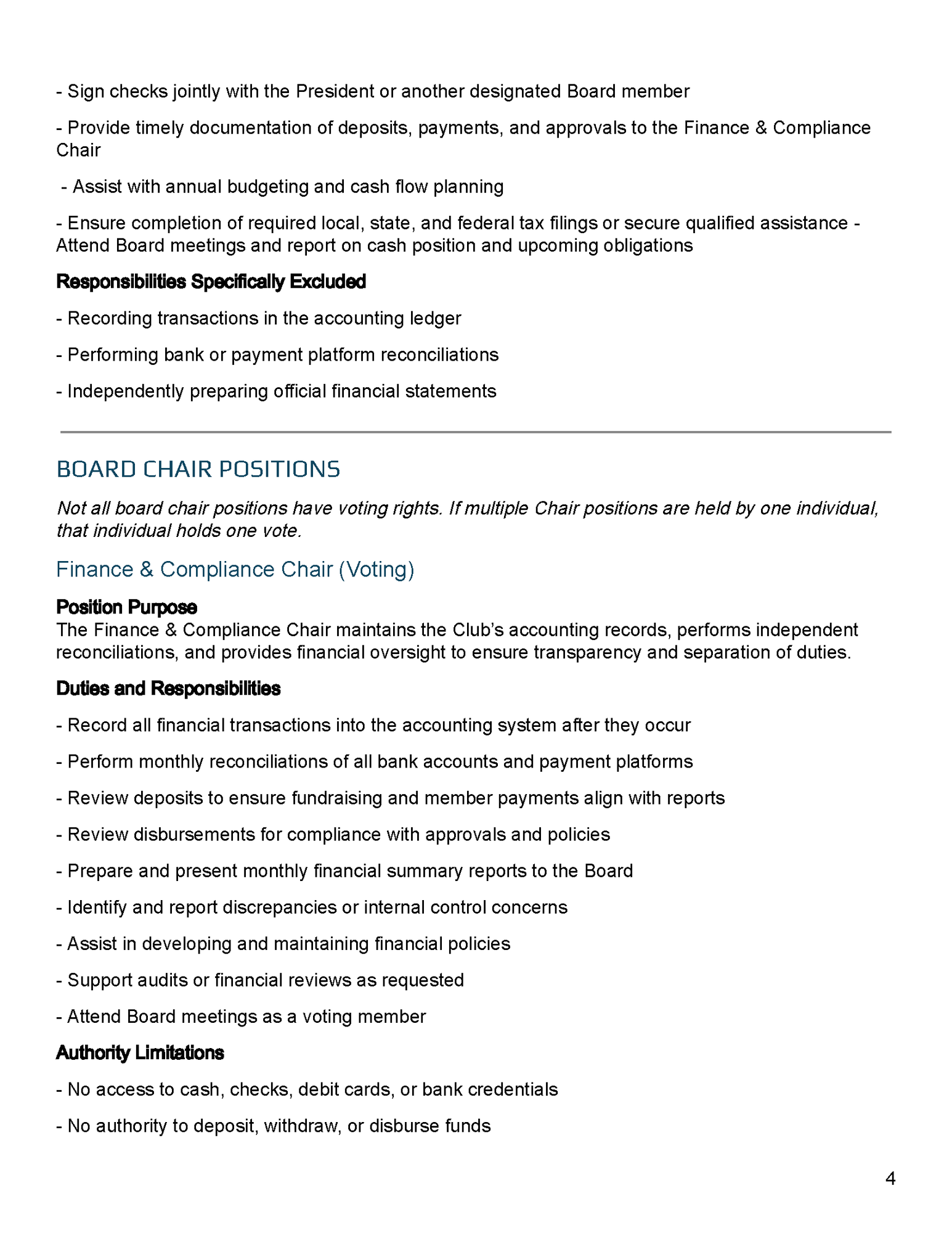 We would love to hear from you. To support a smooth and confident transition, we plan to ask future board candidates to complete a three-month, non-voting period before being nominated for a voting board member position. During that time, individuals can learn the flow of the club, observe board operations, and gain clarity on expectations, time commitments, and responsibilities before being asked to take on a voting position. For the health of our board, we feel it is important that potential voting board candidates have a time period to evaluate if they can sustain a long term commitment to our board. Our board members do have an obligation to put in work weekly for our club and we realize that may not be a good fit for everyone.