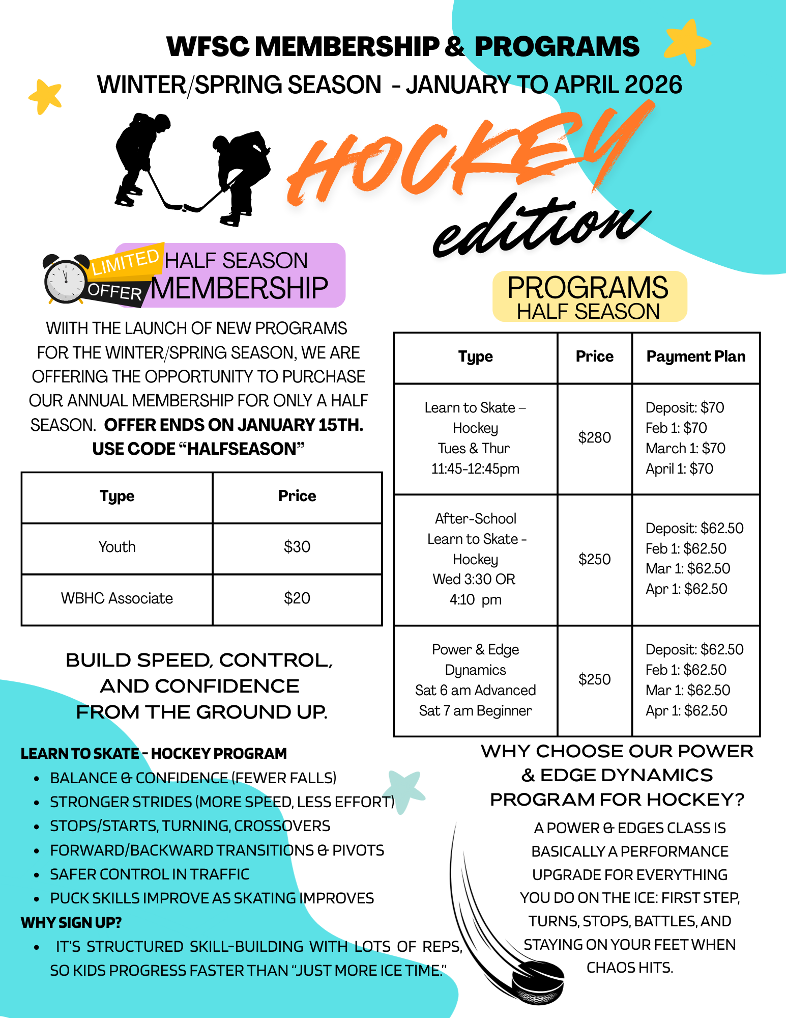 We know it's much anticipated and will fill up quickly. Make sure you buy your club membership first, and then register for the program. Skaters must be between the ages of 5-18 years old.