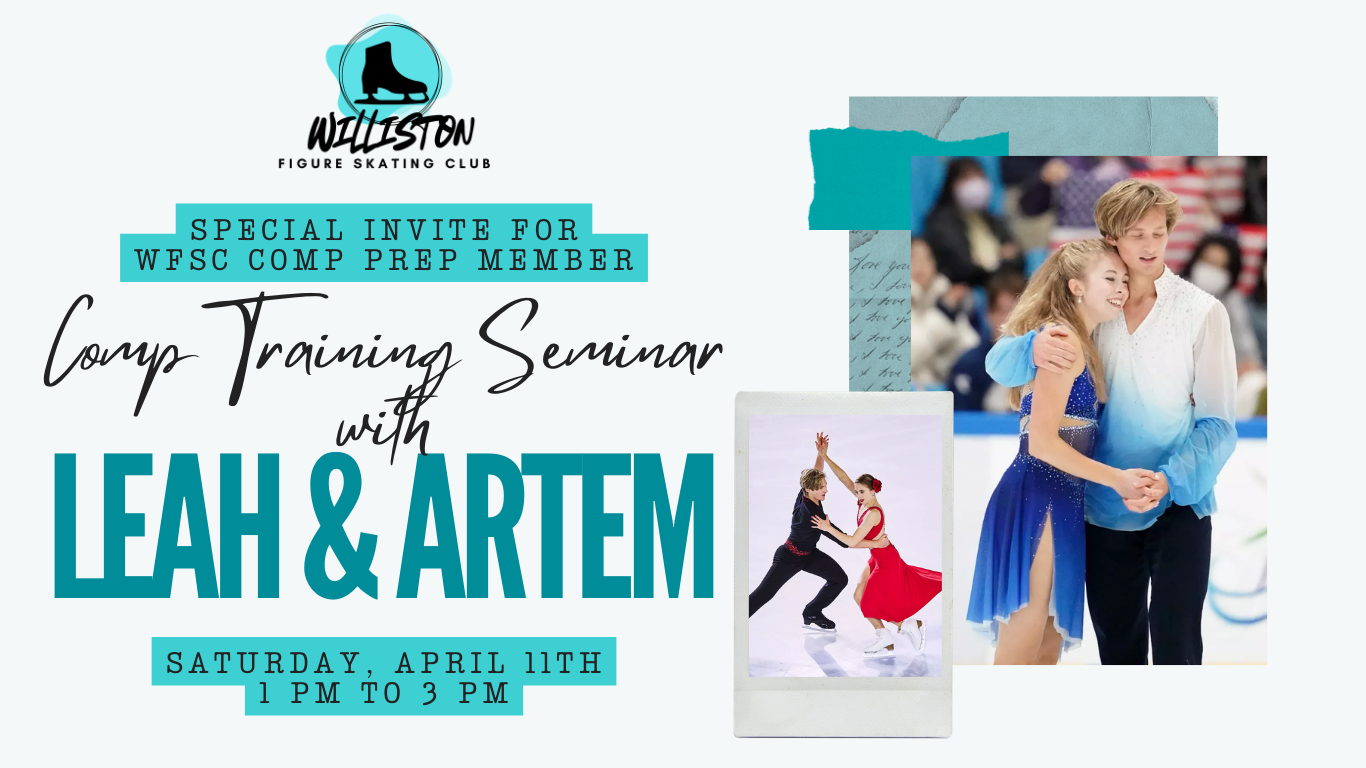 Registration only available for those enrolled in WFSC Comp Program. On Saturday, April 11th we will have a Competition Training Seminar hosted by Leah & Artem from 1:00 to 3:00 PM focused on edges, power, presentation, extension, and off-ice training.