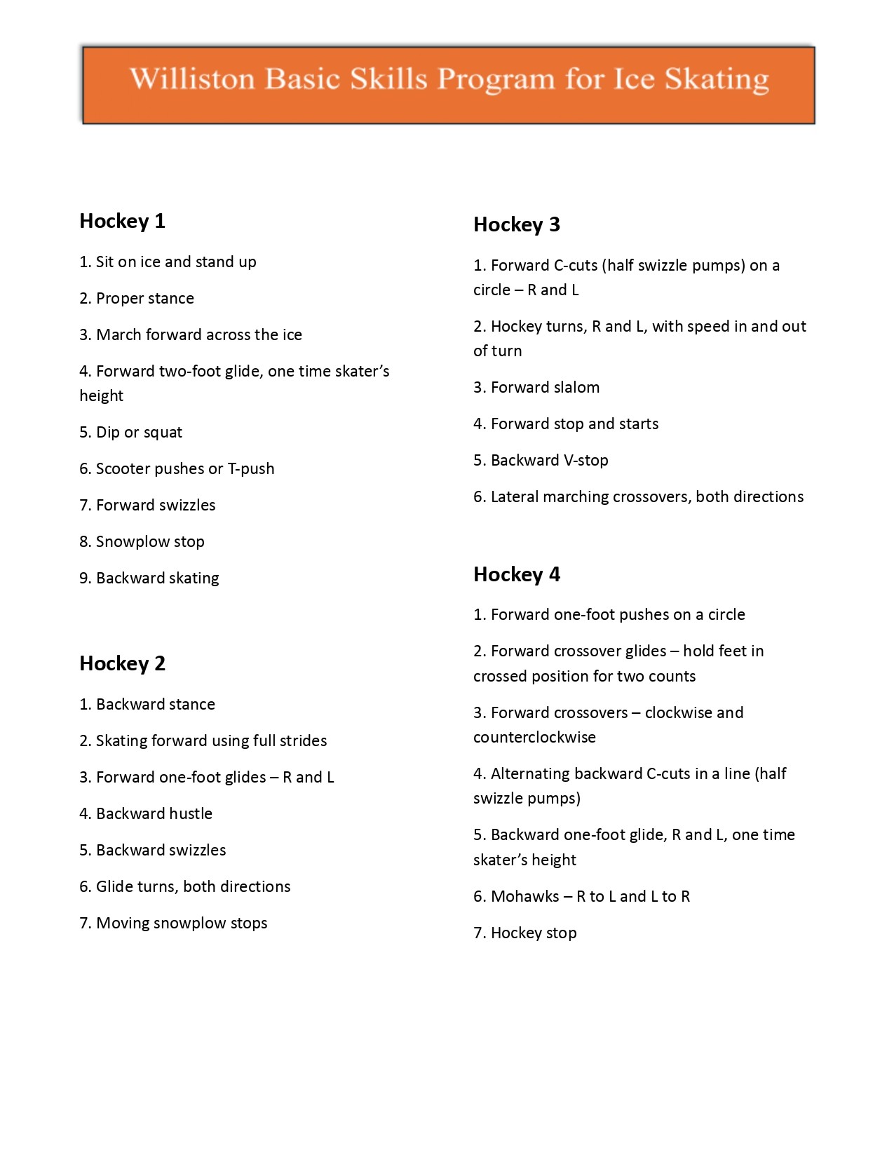 While the club is still small, Figure Skating 1-6 will be grouped with Hockey 1-4 because they are learning the same skills. However, testing will be based on what badge they are working on.