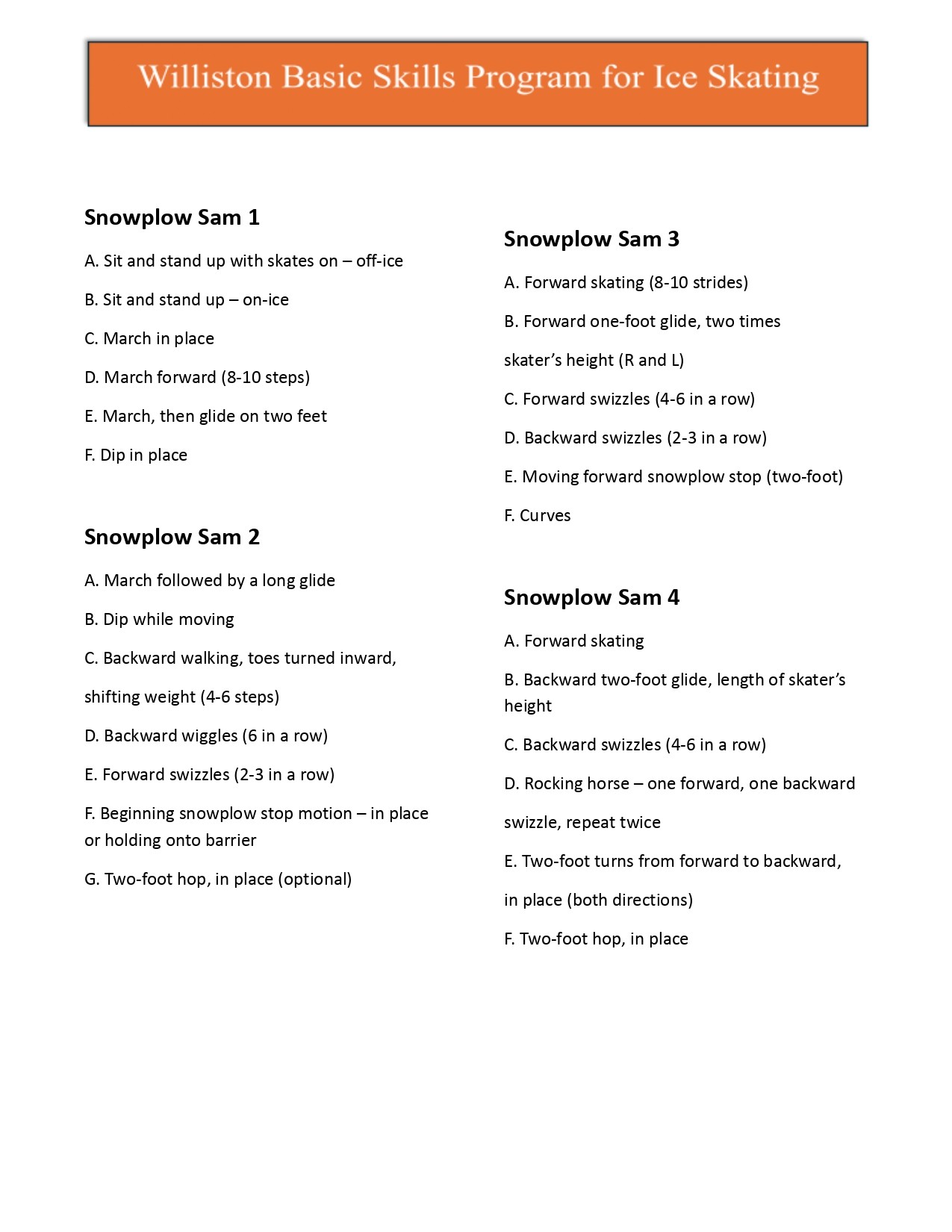 Snowplow Sam is our only age restricted program. Skaters must be ages 4, 5, or 6 at the time of lessons. **3 year olds now being accepted on a trial basis!